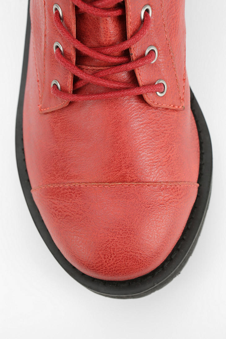 Platform ankle boot in faux leather, from Deena & Ozzy. Features cutout detailing along the heel + a lightweight platform bearing a textured rubber sole for traction. Complete with tonal laces in corded cotton, metal eyelets & a pull-loop at the back for easy on/off. UO Exclusive.